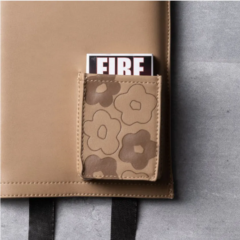 ポケットにファイヤーライターズを収納することで、防災&焚き付けセットとしてご利用ください。