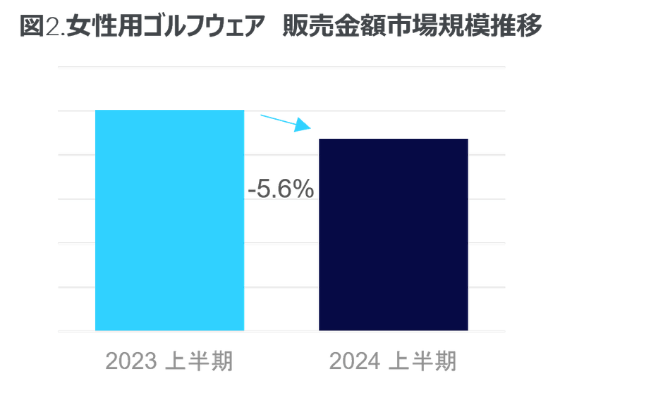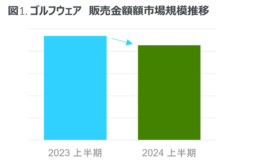 2024年上半期のゴルフウェア販売金額市場規模は、前年比3.0%減となった(図1)。