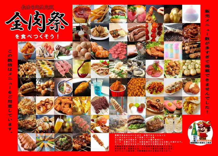 畜産肉料理はもちろん、魚肉や果肉などあらゆる肉をテーマとして全国を対象に出店を募集・選考し、各地の美食が集う西日本最大級の野外グルメイベント。