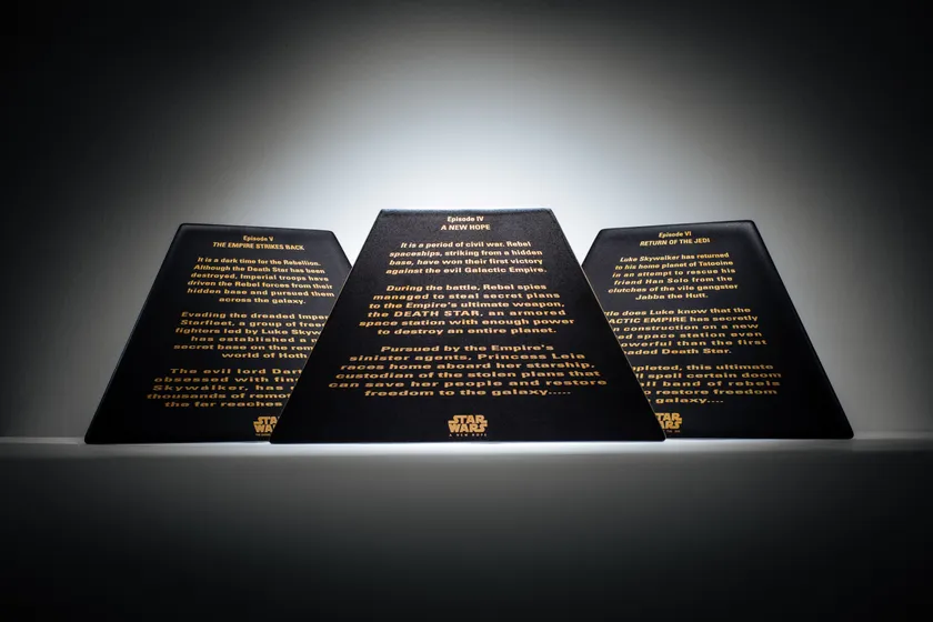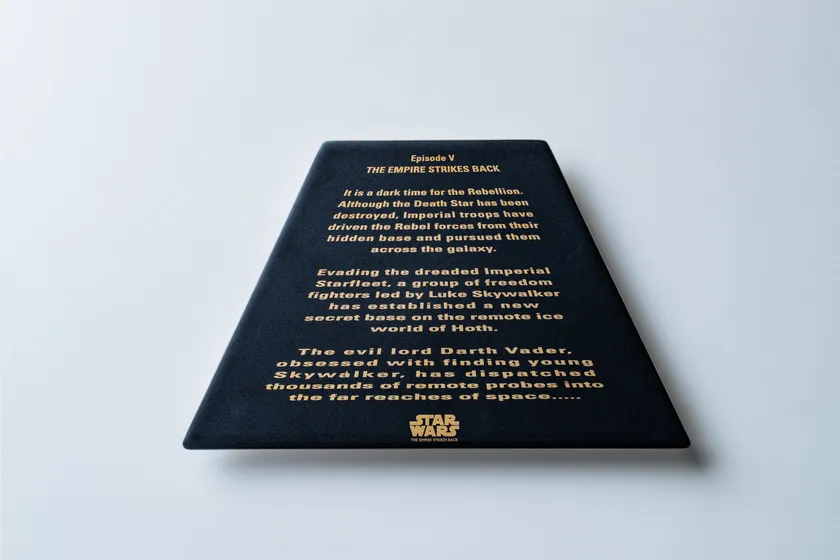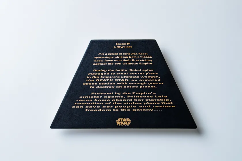 1977年誕生以来、魅力を増し続けるスター・ウォーズ作品の代名詞「オープニングクロール」と、日本が世界に誇る「有田焼」が融合して再現することに成功した、完全オリジナルの有田焼プレートが完成しました。