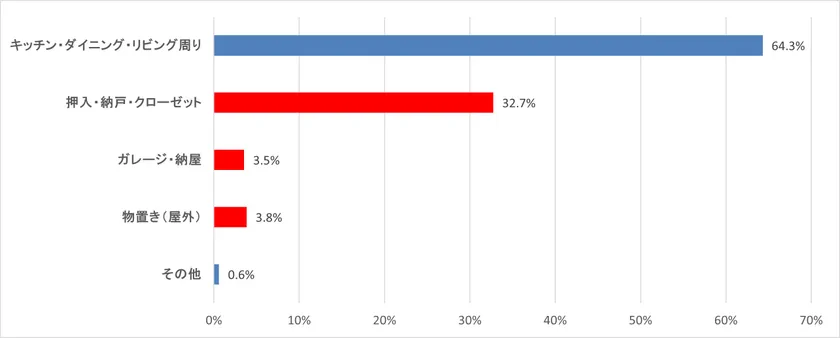 (3) カセットボンベの保管場所では、押入、物置(屋外)、ガレージ・納屋など存在を忘れがちになりやすい場所に保管されているケースが1/3以上ある。