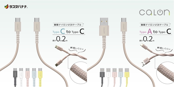 スマートフォン アクセサリーブランド「ラスタバナナ」は、通販サイト「ラスタバナナダイレクト」にて、生活を彩る、かろやか・カラフル・コンパクトなスマホアクセサリーがコンセプトの、「calon(カロン)シリーズ」より、モバイルバッテリー使用時に最適な、20cm長のType-C強靭ナイロンケーブル各種を5月24日より発売を開始しました。