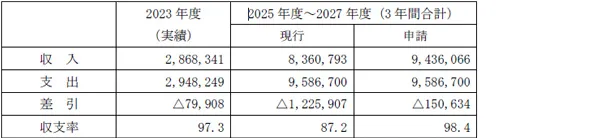 3.収支実績と推定(単位:千円、%)