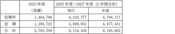 (3)現行・申請運賃比較表