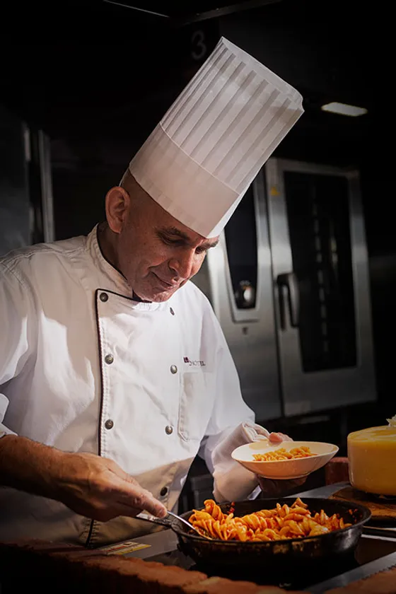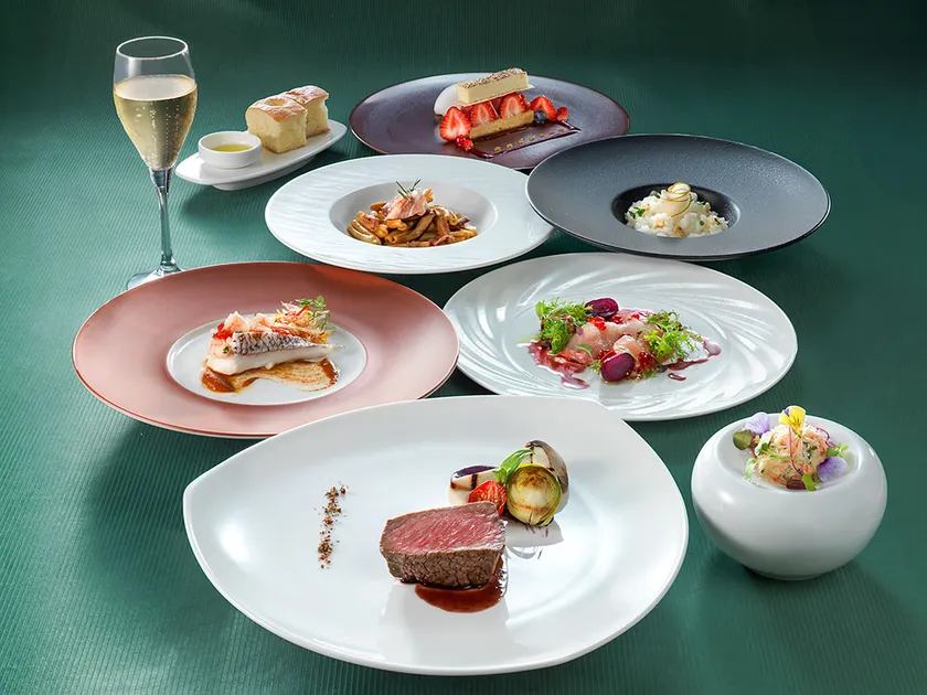 ミラノ出身のイタリア人シェフ ニコラ マヌーリ特製のイタリア郷土料理や国産牛ローストビーフ、ホテルメイドのイタリアンスイーツなど艶やかなメニューがラインナップ。
