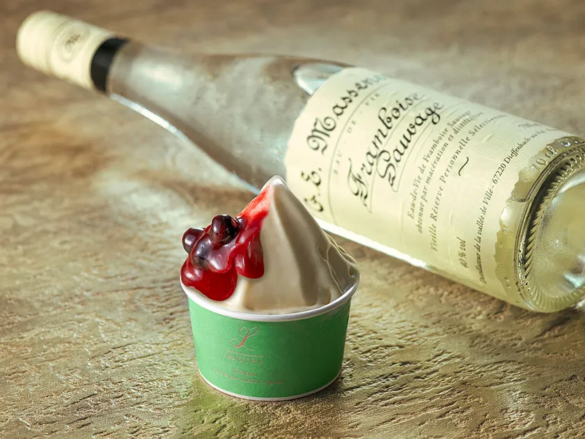 ホテルカラーである“シャンパンゴールド”をイメージし、大人が心ほどける瞬間を贅沢に表現した特別なジェラート。リッチなブランデークリームとベリーソースが織りなすハーモニーをお楽しみください。