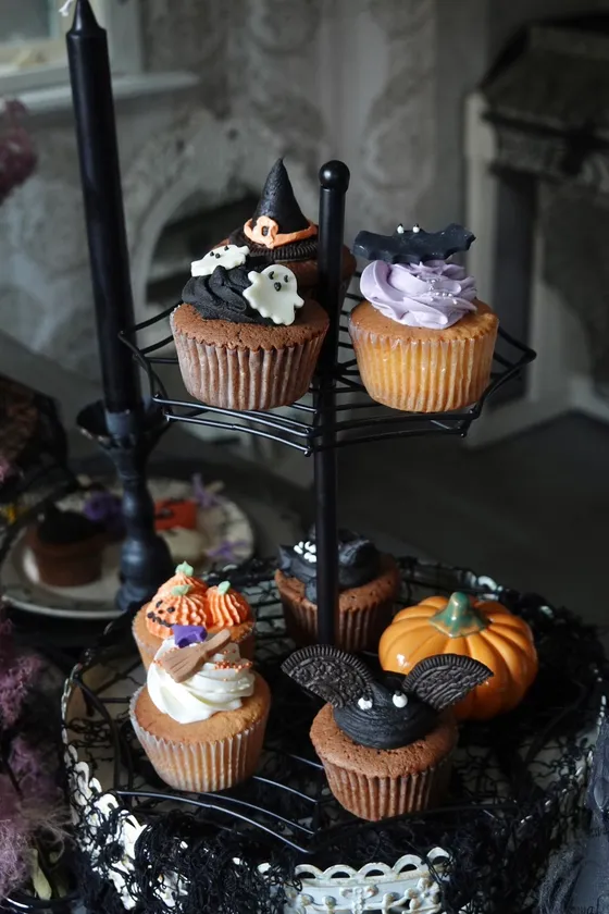 こうもりや黒猫など愛らしいデザインのカップケーキ