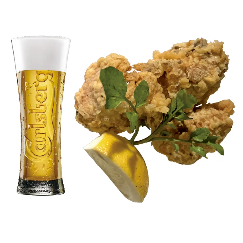 生ビール(カールスバーグ)&ひな鶏の唐揚げ