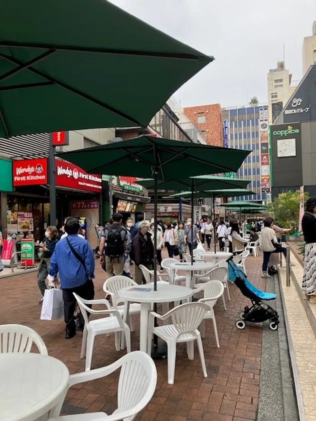昨年に引き続き、コピス吉祥寺に隣接する元町通りやペニーレーンには、テーブルやチェアを設置し、街歩きの途中にほっと一息をつける青空テーブルが登場。今年は期間限定となりますが、平和通りも参加!