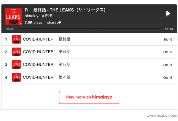 音声配信/オーディオブック「[himalaya]{https://www.himalaya.com/jp}」