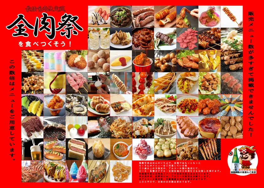 畜産肉料理はもちろん、魚肉や果肉などあらゆる肉をテーマとして全国を対象に出店を募集・選考し、各地の美食が集う西日本最大級の野外グルメイベント