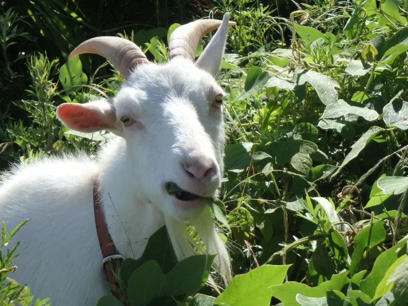 この実験では、ヤギを区画内に係留(ロープでつなぎ止め)し自由に草を食べさせたところ一定の効果が認められました。