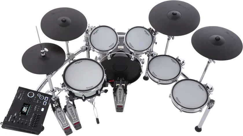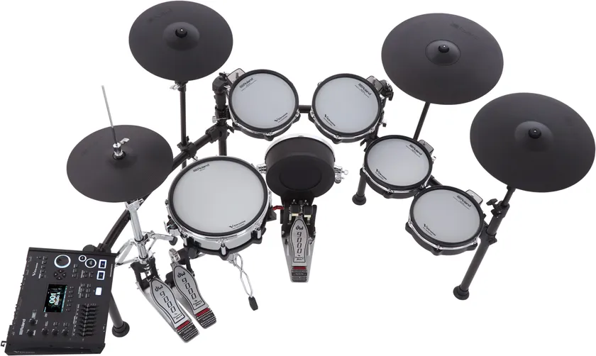 当社は、1985年に電子ドラム・キットを発売して以来、長年にわたって電子ドラムの開発に取り組み、独自の技術とノウハウを蓄積してきました。「Vドラム・シリーズ」の技術の粋を尽くしたサウンドや、高精細のセンサーが搭載されたドラム・パッド/シンバルによる表現力と演奏性は、プロのドラマーからも高い評価を得ています。