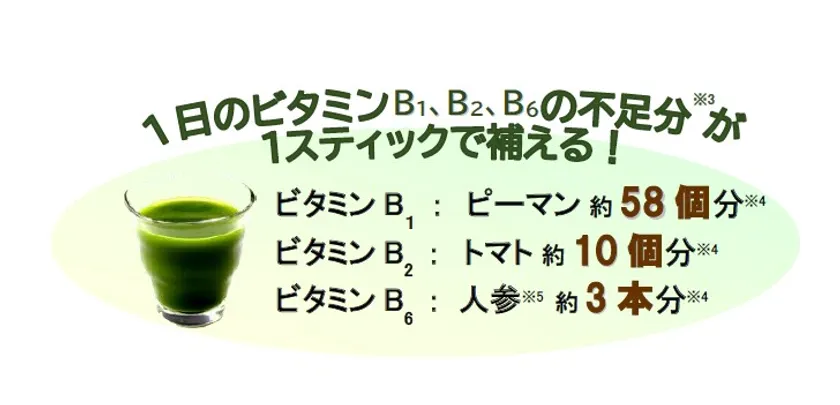 大麦若葉エキス(大麦若葉(九州産)、デキストリン)、ハトムギ分解物、還元麦芽糖水飴、有機ハトムギ若葉(島根県産)、アムラ果実抽出物、ホーリーバジル抽出物、レモン果皮抽出物、カレーリーフ抽出物、グァバ葉抽出物