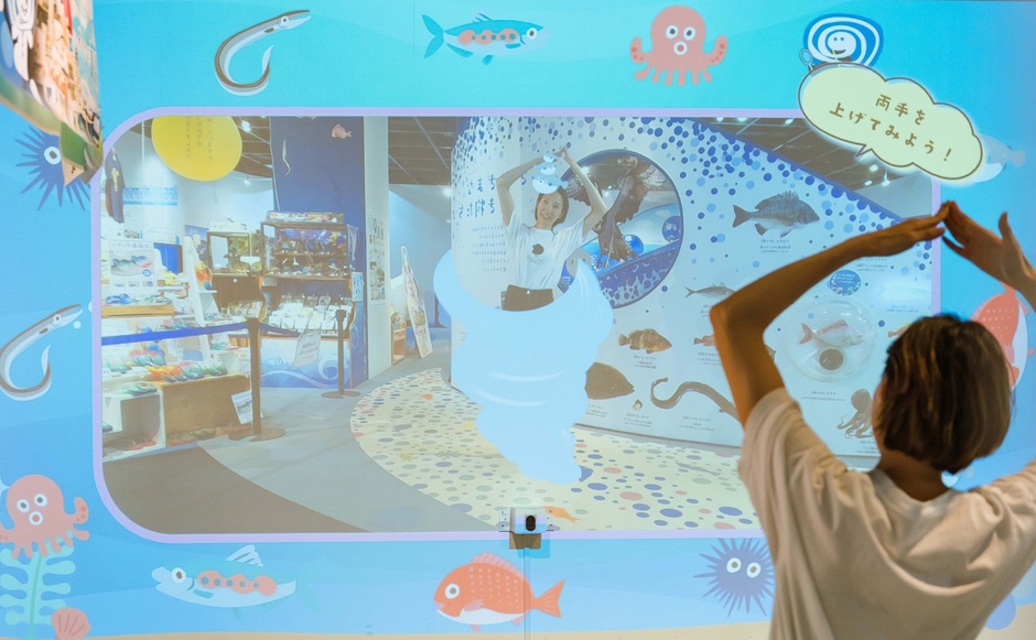 「あわじSNAP!」は、カメラの前で手を広げるだけで、誰でも気軽に写真撮影ができます。うずしお科学館に来ていただいたすべてのお客様が、クスッと笑えて楽しめる無料デジタルフォトエリアとなっております。
