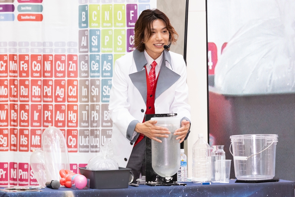 2024年9月22日(日)に埼玉県・越谷市のイオンレイクタウン kaze で行われた 『イオンサステナキャンパス MYボトルデザインコンテスト授賞式』では、科学雑誌『子供の科学』100周年アンバサダーのサイエンスアーティスト・市岡元気先生によるサイエンスライブも開催。会場はもちろんオンラインでも多くの方が参加した。