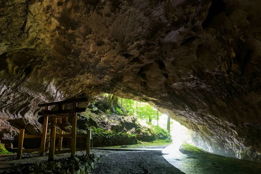 天然記念物「景清洞」は、壇ノ浦の戦いに敗れた平家の武将・大庭景清が潜んでいたと伝えられる鍾乳洞です。洞窟内には景清にちなんだものもあります。天井や壁は芸術品のようにすばらしく、フズリナ、サンゴ、海藻などの化石を見ることができます。また、観光コースとは別に闇の生物、化石を探す探検コースもあります。