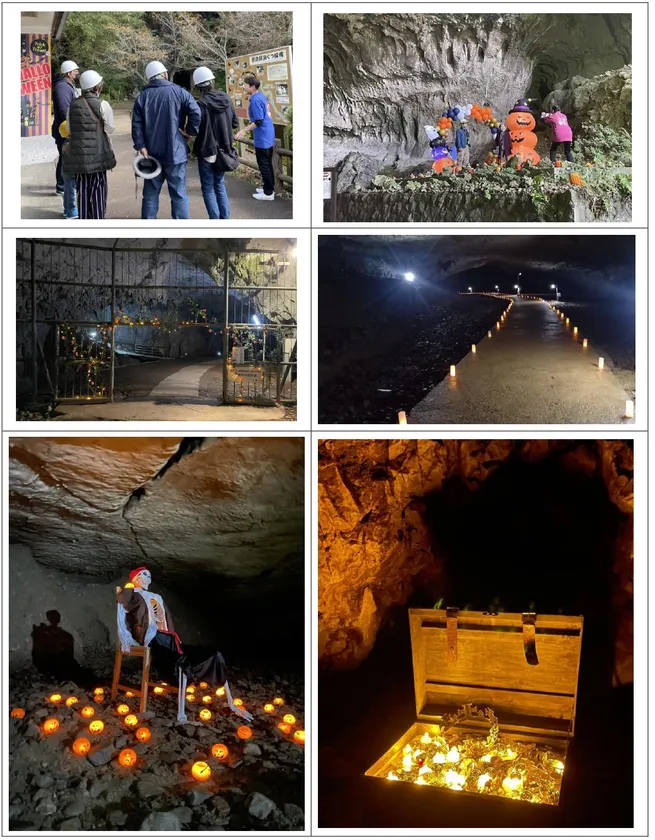 普段は観光鍾乳洞である「景清洞」の洞窟内では、これまでも音楽ライブやウエディング等のイベント会場として活用しており、昨年は「洞窟Halloween ~景清洞~」のハロウィンイベントを開催しました。今回もイベント開催により秋吉台エリアの活性化を促進することを目的として、【洞窟のハロウィン】をもっと楽しんでいただける内容にしました。