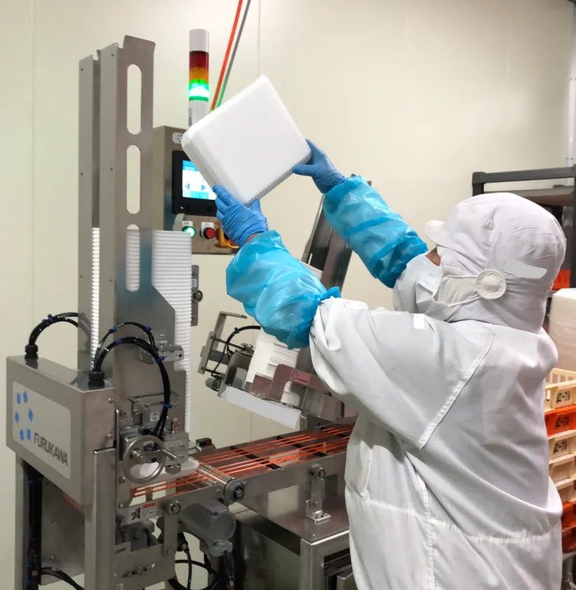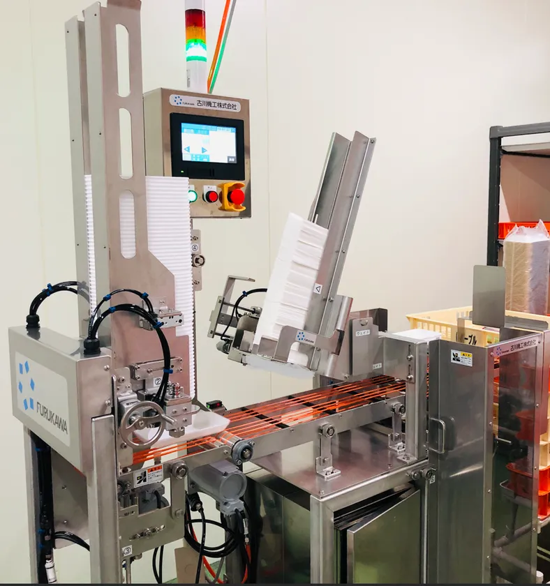 古川機工株式会社(本社:新潟県長岡市、代表取締役社長:古川 琢也、以下 古川機工)は、スーパーやコンビニ等のセントラルキッチンにおける(精肉・鮮魚・惣菜等)の盛り付けシーンで活用する「ドリップシート自動投入機能付トレイ供給装置」(以下 ドリップシート・トレイ供給装置)の実機となる1号機を2024年10月1日より株式会社エーブル(本社:熊本県八代市、代表取締役:増永 幸雄、以下 エーブル)様、精肉工場内にて、運用を開始いたしました。