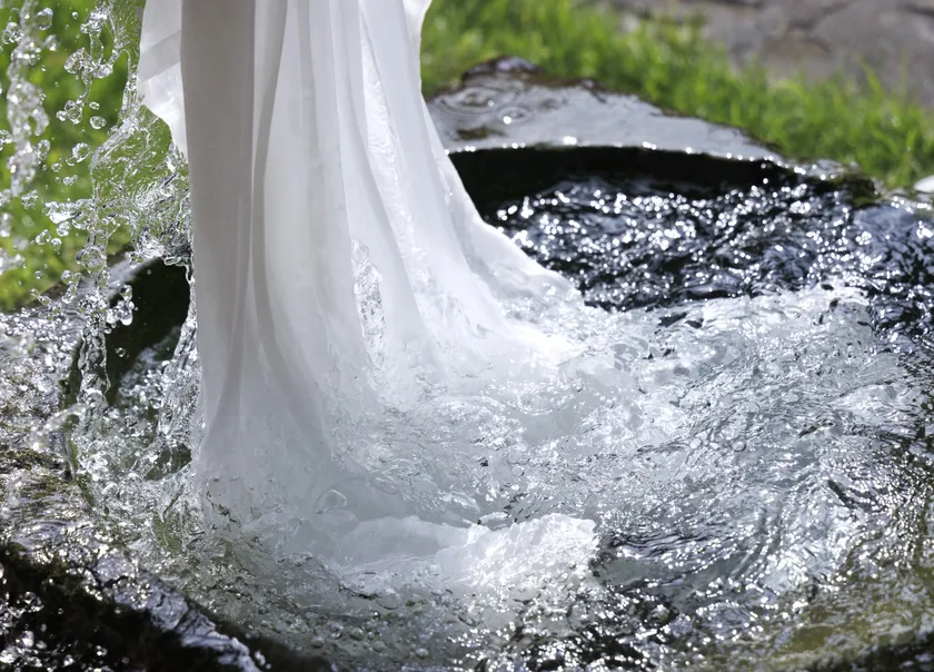 美しい地下水で晒しを行う