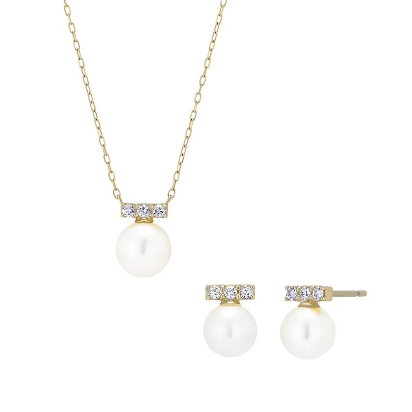 K10YG フレッシュウォーターパール/ホワイトトパーズ ネックレス、ピアス