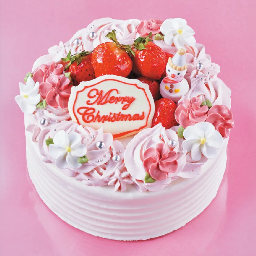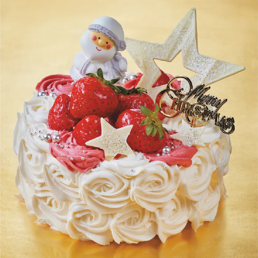 ふんわり食感のスポンジと、甘さ控えめで口溶けなめらかな生クリームのショートケーキ。雪の結晶をたくさん散りばめ華やかに仕上げました。クリスマス気分満点のショートケーキです。