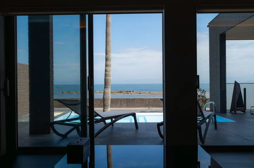 リビングやテラス、温泉露天風呂から美しい白浜の海を一望できる抜群の景観の良さを誇るオーシャンビューの棟タイプです。