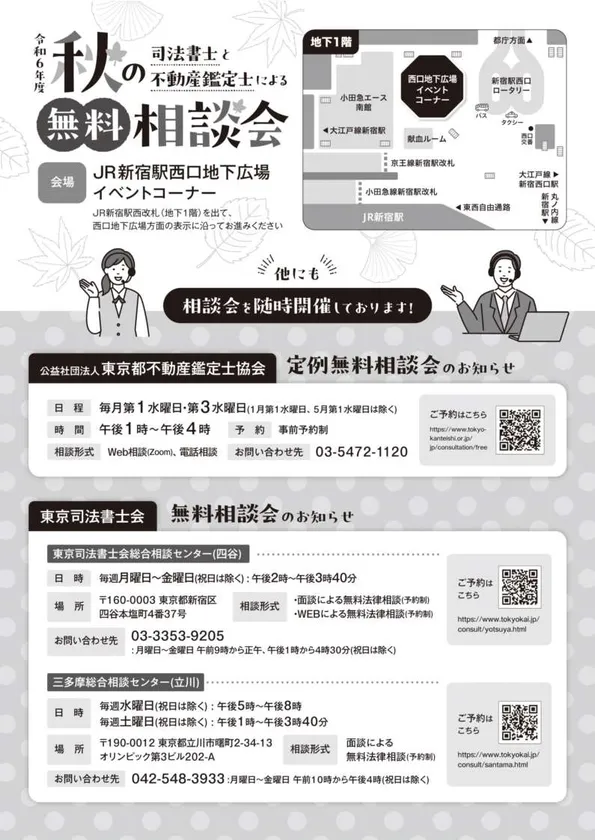 令和6年度司法書士と不動産鑑定士による 秋の無料相談会を10月11日(金)に 新宿駅西口地下広場イベントコーナーにて開催