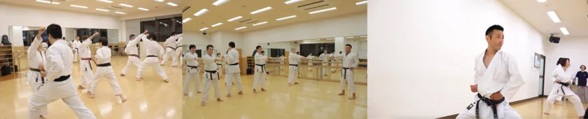 ・内容:作法に基づく有段者同士の組手を実演するとともに、空手の基本である突きや蹴り(手技と足技)および空手型や、『礼に始まり礼に終わる』という武道精神の基本を教えます。また、体験稽古の後には、忍者VS空手家の対決を実演し、皆様に楽しんでいただきます。
