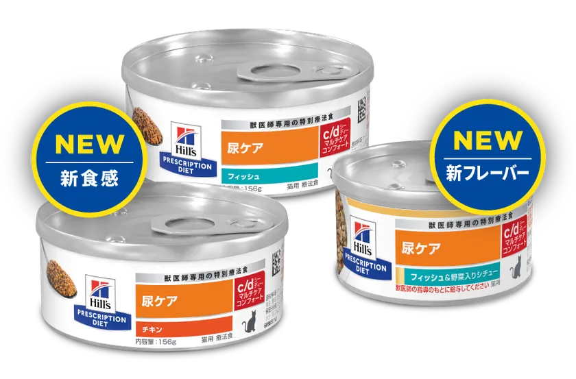 この新製品の発売により、ストレス性をはじめとした下部尿路疾患の管理が必要で、尿ケアが必要な猫の生活の質向上に役立つことが科学的に証明された療法食、ヒルズ プリスクリプション・ダイエットc/d(シーディー)マルチケア コンフォートシリーズは、ペットにも飼い主にもさらなる安心とおいしさをお届けできるようになります。