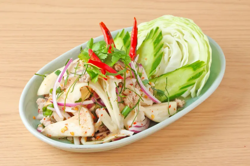 タイ語で「幸運」という意味のラープは、ひき肉をハーブや粉唐辛子、炒ったもち米と共に和えた、タイ東北部の代表的料理です。
