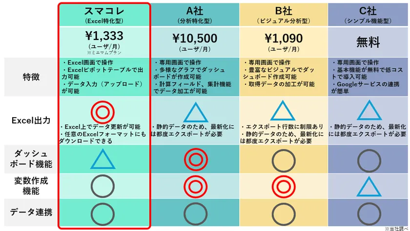 ■Excel出力できるBIツール比較