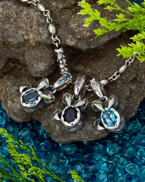 右:白虎ペンダントw/スイスブルートパーズ・スカイブルートパーズ ¥38,500(税込)