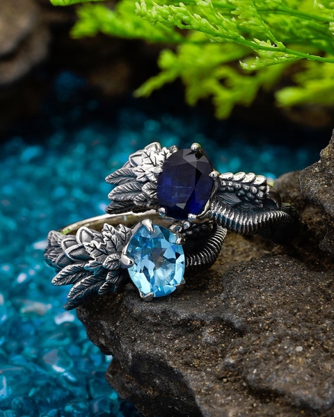 右:KAIリングw/アクアマリン・ロンドンブルートパーズ・スイスブルートパーズ・スカイブルートパーズ ¥84,700(税込)