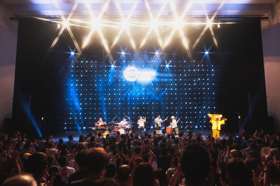 拍手の中ステージに立ったVo.比嘉栄昇は、大盛り上がりの観客に向けて「子どもたちも騒いでくれて構いません」「リビングでくつろぐように、最後まで一緒に楽しんでいきましょう」と声をかけ、名曲『恋しくて』で幕を開けた。続いてGt.&Vo島袋優が作曲を手がけた『海の声』、そして『三線の花』と続き、会場は早くもひとつになった。