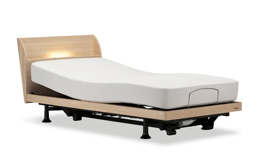 インテリアに馴染む高いデザイン性と機能性を両立した電動リクライニングベッドシリーズも展示。
