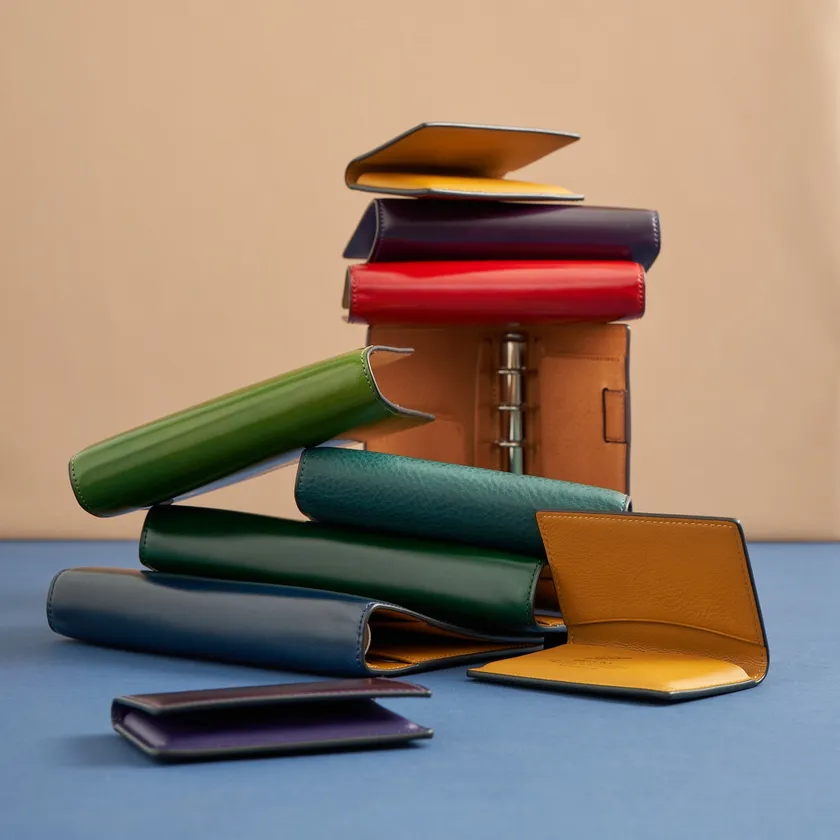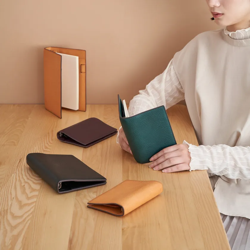 レーデルオガワ社製の繊細で透明感あふれる水染めコードバンの色鮮やかな色彩を活かし、豊富なカラーバリエーションを実現しました。さらに外側(コードバン)、内側(カーフ)の色を変え、バイカラー仕様にすることでファッション性を高め選ぶ楽しさも加えています。