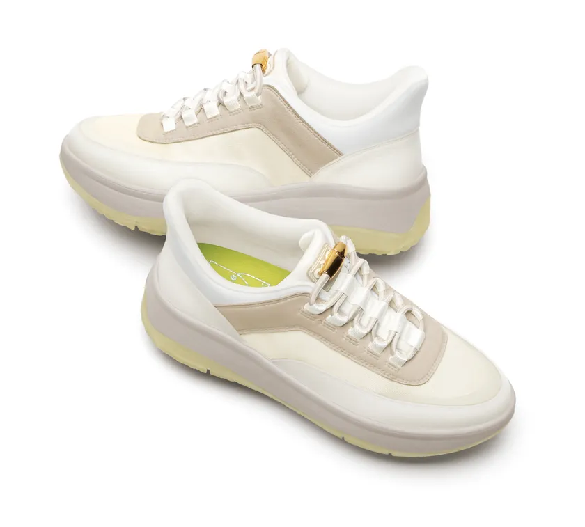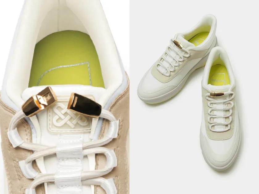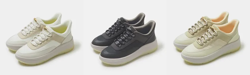 前シーズン発売した「撥水ハンズフリースニーカー」は、発売からわずか1週間で店頭、WEB販売の両方で販売足数1位を記録し、合計で2万足を売り上げました。そこで、秋冬のローンチに向け、かかとのモールドカウンター形状とデザインを改良。履き心地もデザインもバージョンアップしたローカットスニーカーを発売いたします。靴ベラ状のモールドパーツが、よりスムーズな足入れを可能にし、モールドカウンター形状の改良により、着用時のホールド感も向上。ハンズフリーシューズにありがちなかかとの浮きを解決しています。従来のものよりも、流行りのシアーアイテムやシャツワンピースにも合わせやすいよう軽やかなカラーリングと、やや艶感のあるクリーンな印象の生地使いで普段使いしやすいデザインに仕上げています。