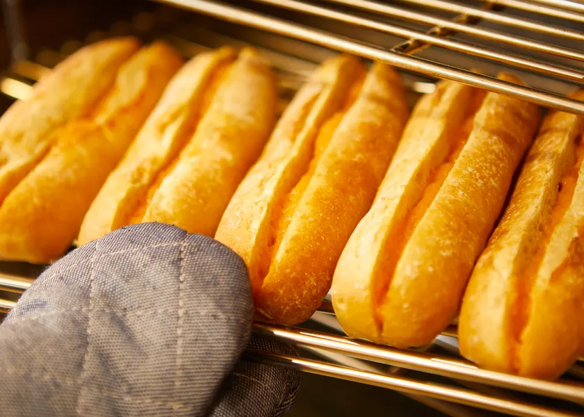 販売している「明太フランス」は、やまやの辛子明太子を使用した明太フィリングがたっぷりと詰まっており、明太子のピリッとした味わいが口の中に広がります。店内のオーブンで温めて提供するため、パンの香ばしさとフィリングの滑らかさをその場でお楽しみいただけます。新幹線の旅のおともにも最適な、ワンハンドで楽しめる一品です。