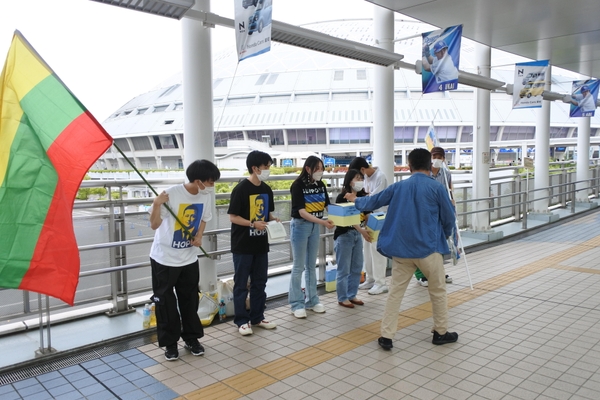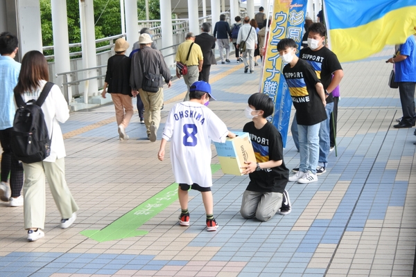 バンテリンドームの中日ー楽天戦に向かう人たちに呼びかける