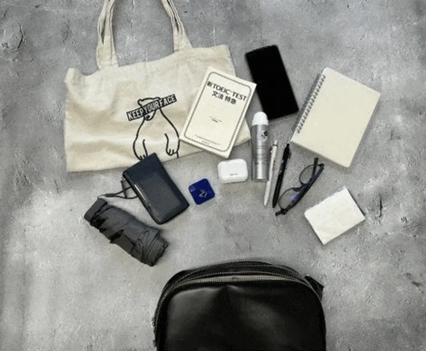 持ち物を「立てて」収納することにより、バッグを斜め掛けしながらでも、すぐに欲しい物を見つけて取り出せるようになりました。