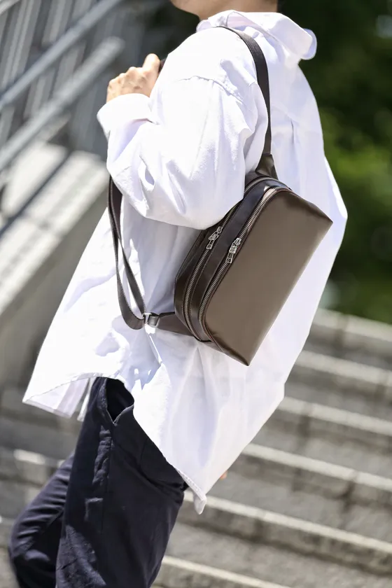 プロジェクト第一弾で掲げた「整理整頓」のコンセプトを引き継いだ本革ボディバッグです。
