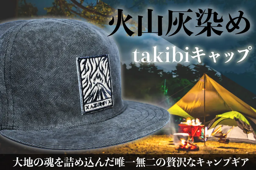 火山灰染め職人・フィードバッグ社とタッグを組んだ 「火山灰染めのtakibiキャップ」クラウドファンディング開催