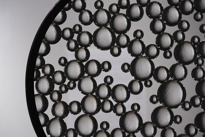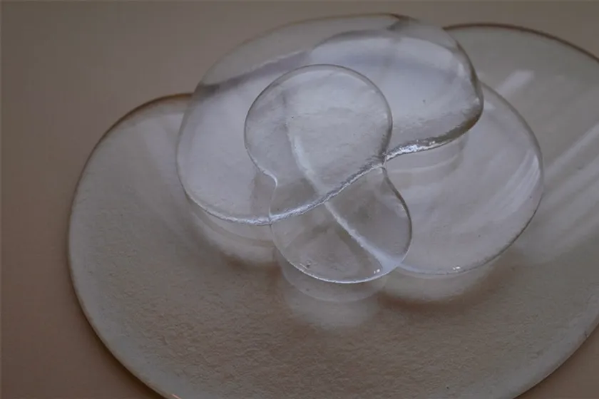 「制作時に溶けたガラスに触れ、ガラスの弾力ある動きを感じるたびに、幼い頃に水たまりに足を入れ、水遊びをした記憶が呼び起こされ、楽しさや喜びを与えてくれます」と語る安藤氏。