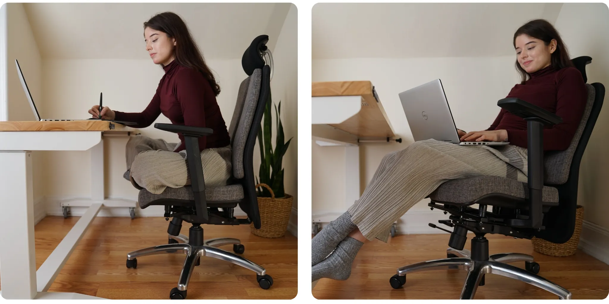 従来のオフィスチェアと比べて、Duo Reliefはさらに多機能で柔軟に調整できます。背骨だけでなく、骨盤や健康的な姿勢もサポートし、現代人の多様な体型や座り方に合わせた快適な座り心地を提供します。さらに、通気性の良いメッシュ素材を使っているので、長時間座っていても蒸れずに快適さを保ちます。