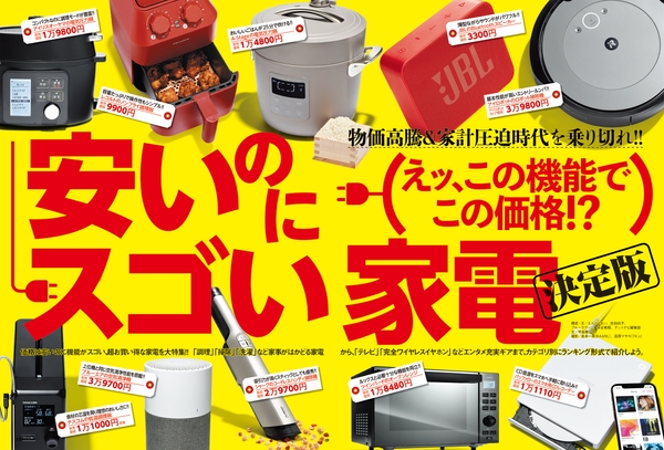 価格はリーズナブルなのに機能が優れている、超お買い得な家電を大特集。「調理」「掃除」「洗濯」など家事がはかどる生活家電から、テレビや完全ワイヤレスイヤホンなどエンタメ充実ギアまで、カテゴリ別にランキング形式で紹介します!