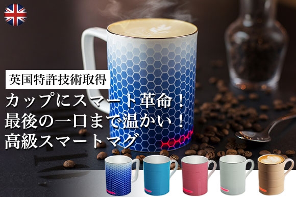 【2月22日 正午】イギリス発カップにスマート革命!“白い金”高級磁器ボーンチャイナで作った自動発熱マグ