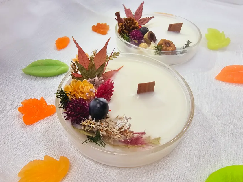 ~モミジや松ぼっくりを使ったシャーレキャンドルづくり~