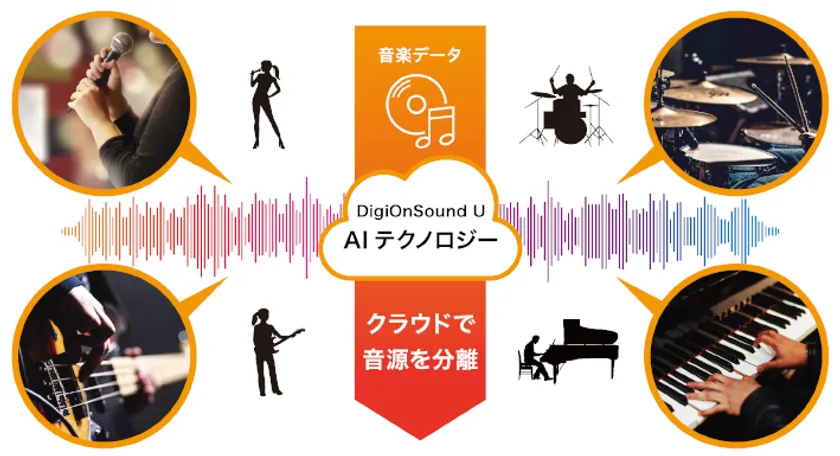 音楽に含まれるボーカルや楽器の音を分離し、分離した音源をカラオケや楽器演奏などに活用できる新しいサウンド技術を展示します。