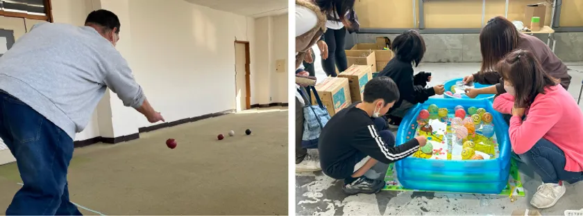 ボッチャ体験、ヨーヨー釣り(2023年10月に実施の様子)